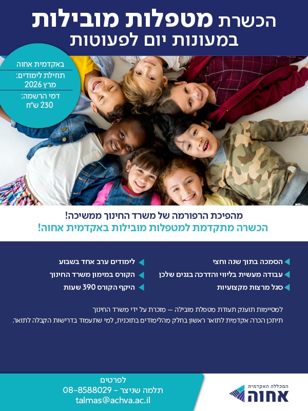 קורס מחנכות - מטפלות מטעם מכללת אחוה בלוד