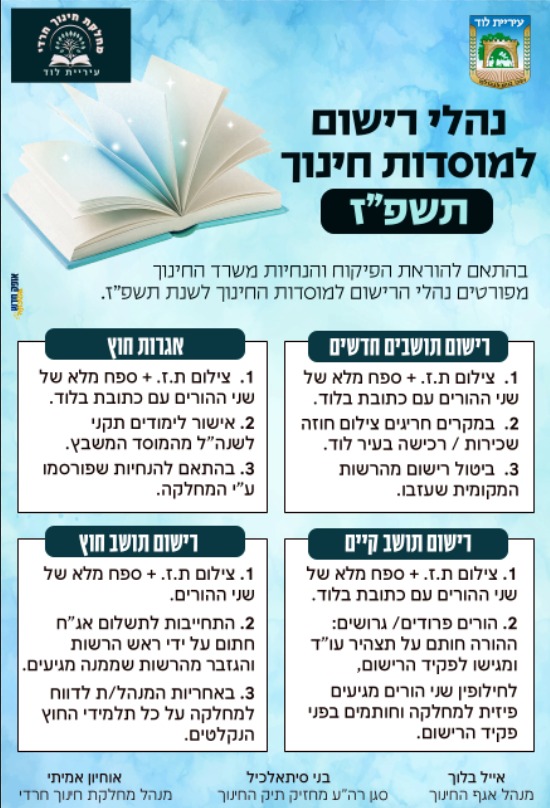 הנחיות רישום לגני הילדים ולבתי הספר תשפ"ז