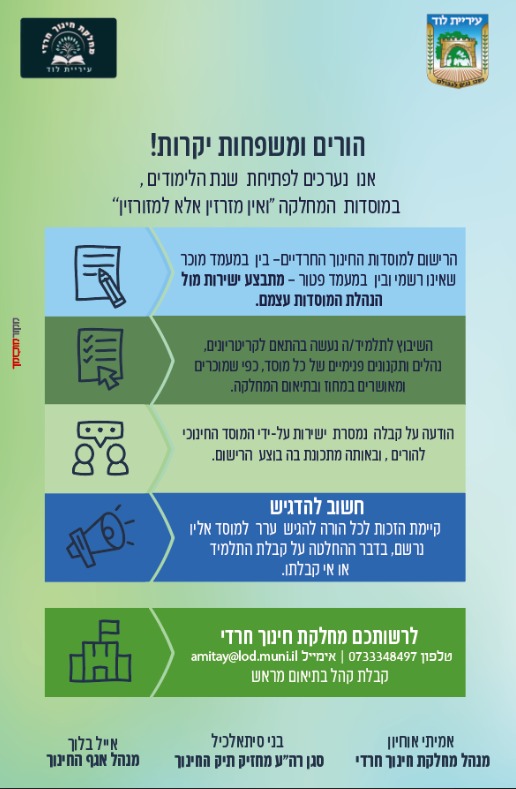 הנחיות רישום לגני הילדים ולבתי הספר תשפ"ז