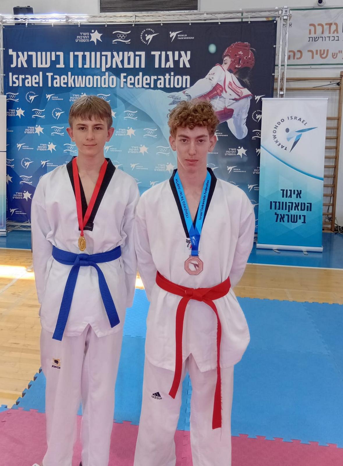 מקסים וולקין, אלוף ישראל, ואיתן בוטבינקין, שזכה במדליית ארד, באליפות ישראל בטאקוונדו