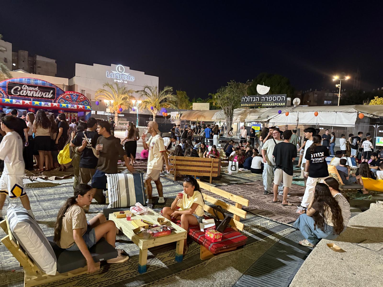 כמיטב המסורת, גם בקיץ הזה הקימה מחלקת הנוער העירונית מתחם לילי מושקע במיוחד בלב העיר, שפתוח בחינם לבני ובנות הנוער מדי ערב – והפך למוקד בילוי שוקק חיים. פינות ישיבה מפנקות, עמדות מולטימדיה מתקדמות, משחקי שולחן, DJ אחר בכל ערב, דוכני אוכל שווים, והפתעה חדשה בכל לילה – רק חלק ממה שחיכה למשתתפים.