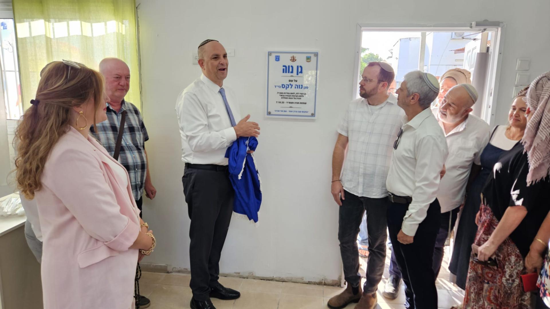 עם פתיחת שנה"ל, נחנך גן ילדים ע"י נועם ועפרה לקס שיחיו, הוריו של סגן נוה לקס הי"ד, בן העיר לוד וגיבור ישראל, לוחם סיירת מטכ"ל שנלחם בקרבות הגבורה בבארי, מול מחבלי החמאס ימ"ש ביום שמחת תורה תשפ"ד, ה-7 באוקטובר 2023, ונהרג על הגנת המולדת