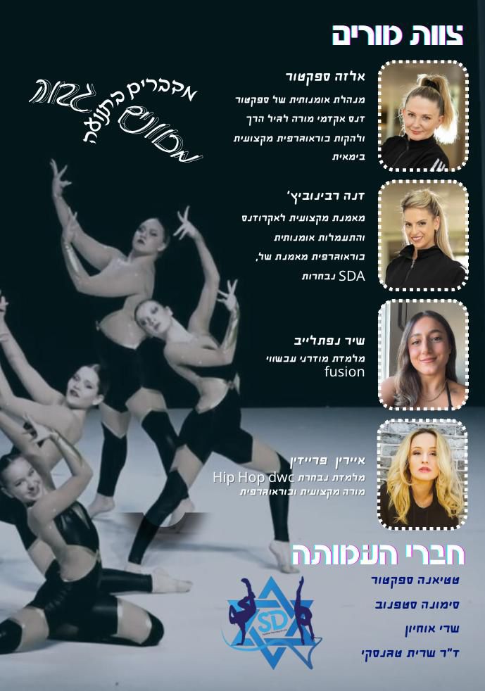 את הדרך המקצועית מובילה אלזה ספקטור, המנהלת האמנותית של SDA - מורה לגיל הרך, ולהקות, כוראוגרפית מקצועית ובימאית. אלזה, בוגרת האקדמיה למוזיקה ולמחול, מביאה חזון אמנותי עמוק ויכולת נדירה להוציא מכל רקדן את המיטב שבו. לצידה פועלת דנה רבינוביץ - מאמנת מקצועית לאקרודנס והתעמלות אומנותית, כוראוגרפית והמאמנת האחראית על נבחרות האקרודנס וההתעמלות האומנותית. דנה משלבת ידע טכני עם גישה חינוכית מעצימה, והופכת כל אימון למסע של התפתחות אישית. לצידן - שיר נפתלייב - מלמדת ריקוד מודרני עכשווי פיוז'ן, ואיירין פריידין - מלמדת נבחרת היפ הופ, מורה מקצועית וכוראוגרפית. חברי העמותה: טטיאנה ספקטור, סימונה סטפנוב, שרי אוחיון ודר' שרית טגנסקי.