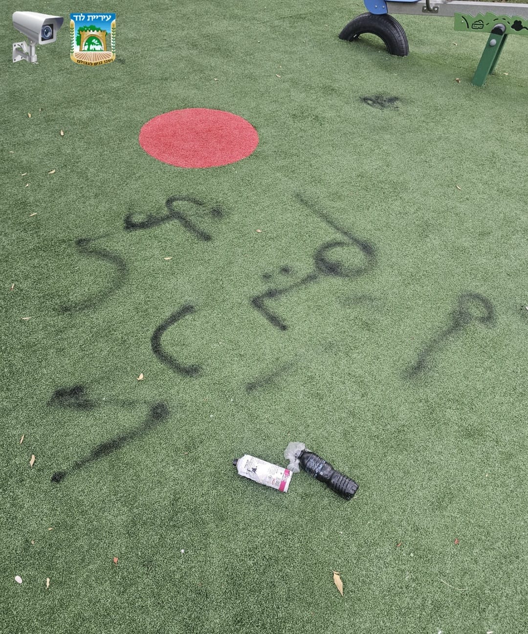 מספר ילדים תושבי לוד ששהו בפארק יסמין החדש, תועדו במצלמות האבטחה של 'מוקד רואה' בעיריית לוד תוך שהם מרססים כתובות גרפיטי על מתקנים משחקים, דשא סינטטי וקירות