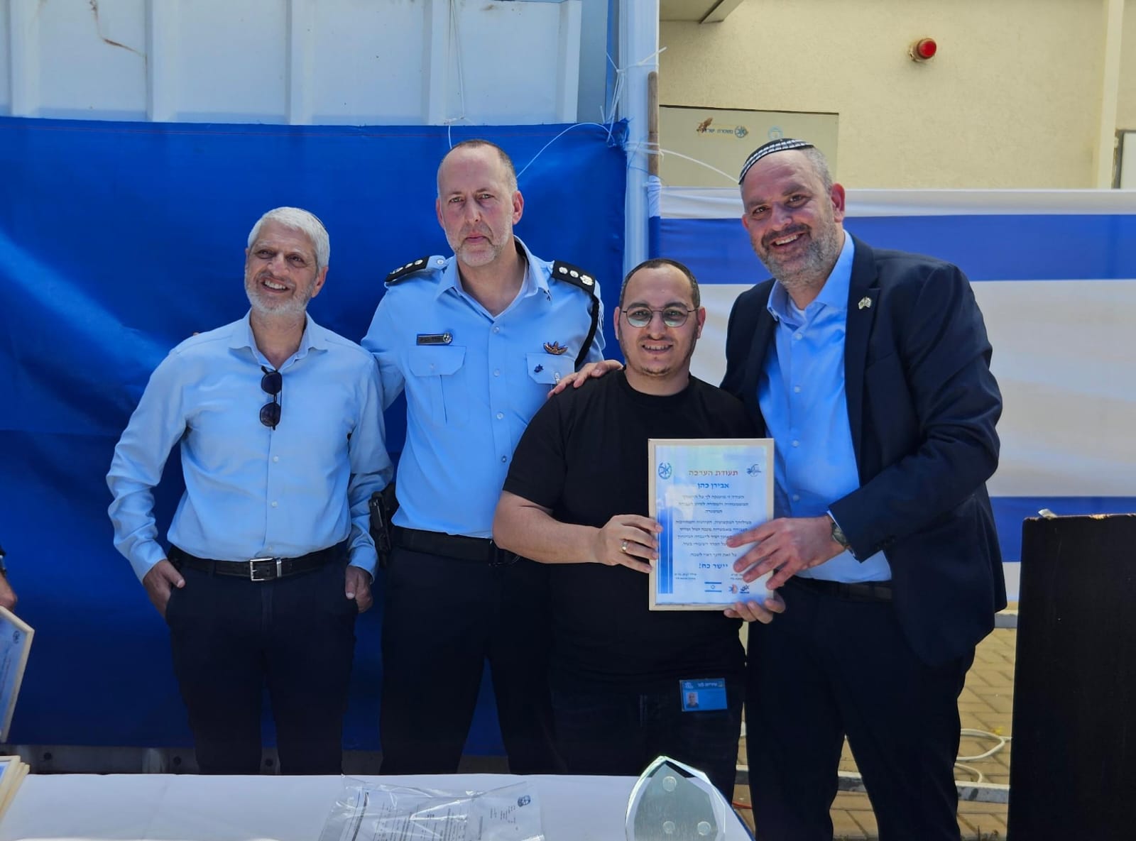 מנהל ה'מוקד רואה' של עיריית לוד – אבירן כהן וכן פקח השיטור העירוני - דוד נאמן, הופתעו בטקס שערכה משטרת לוד בניצוחו של נצ"מ מידד לביא, עת נקראו לקבל תעודות הוקרה על שיתוף הפעולה שלהם עם המשטרה, תוך דאגה לביטחון התושבים וסיכול הפשיעה הפלילית