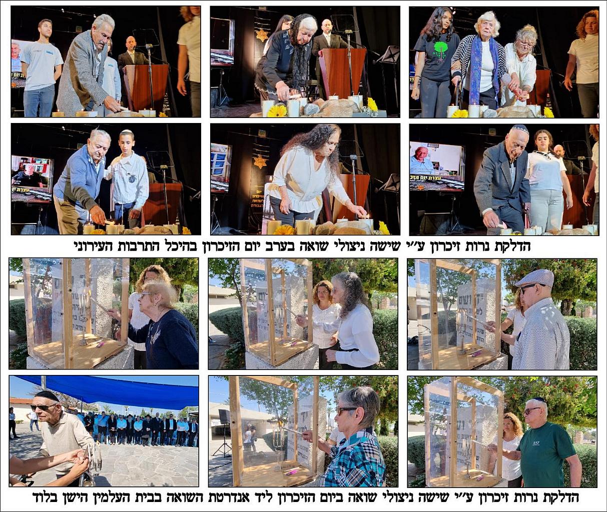 - ניצולי השואה מדליקים נרות זיכרון בערב יום הזיכרון בהיכל התרבות וביום הזיכרון בבית העלמין