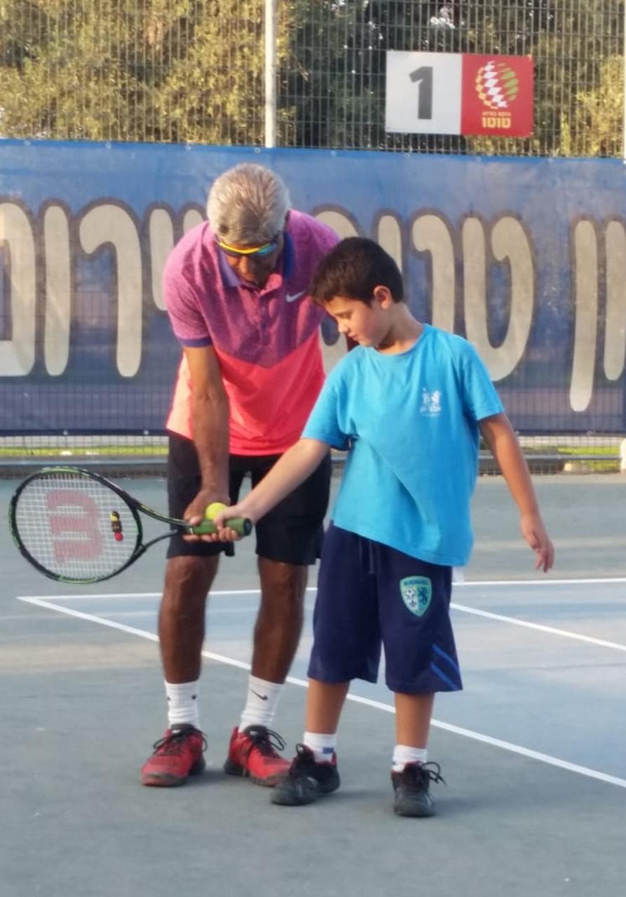 - אימונים והתמדה מגיל צעיר: נועם עם מאמנו האישי, אהרון חמרה, "מר טניס לוד"