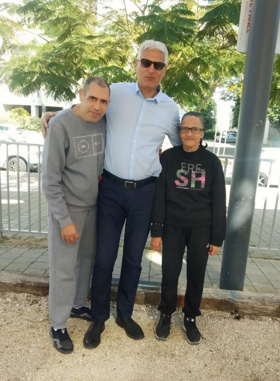 • בתמונה: מאיר אליהו עם דרי מעון אביב, במהלך ביקורו במועדון הפטאנק