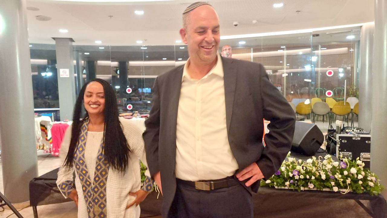 - יאיר רביבו בריקוד אתיופי מסורתי עם חברת המועצה אלמז זרו