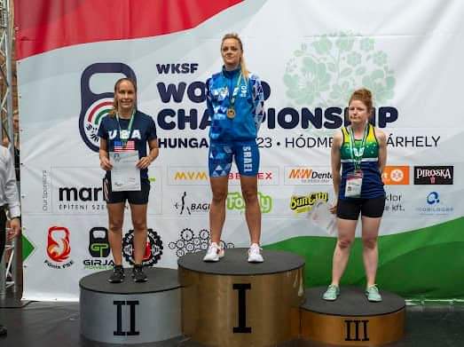 • אביטל שינא מלוד עם מדליית הזהב על הפודיום באליפות העולם בקטלבל ספורט