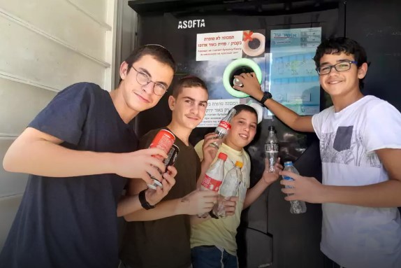 • תלמידי הישיבה התיכונית ממחזרים בקבוקים, צילום: ישיבת צביה אלישיב לוד
