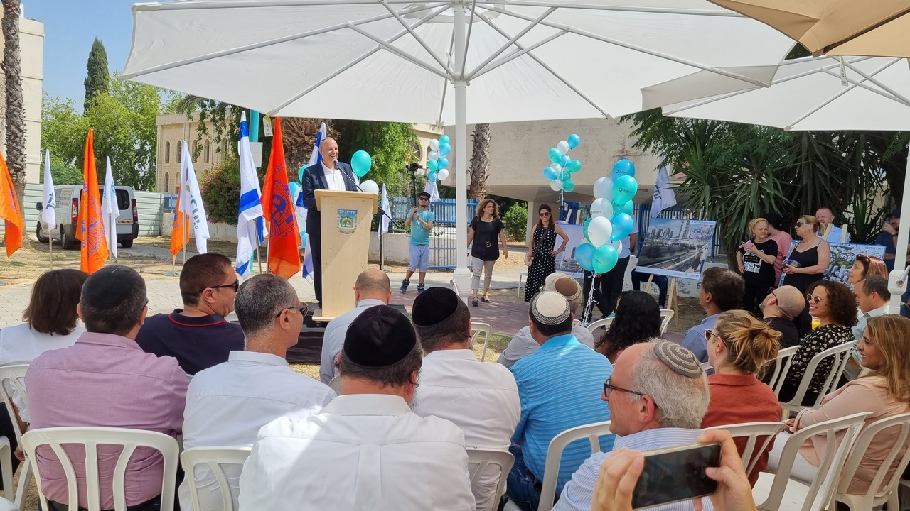 - בתמונה: יאיר רביבו בנאומו, משיקים את פרויקט ההתחדשות העירונית הראשון בלוד.