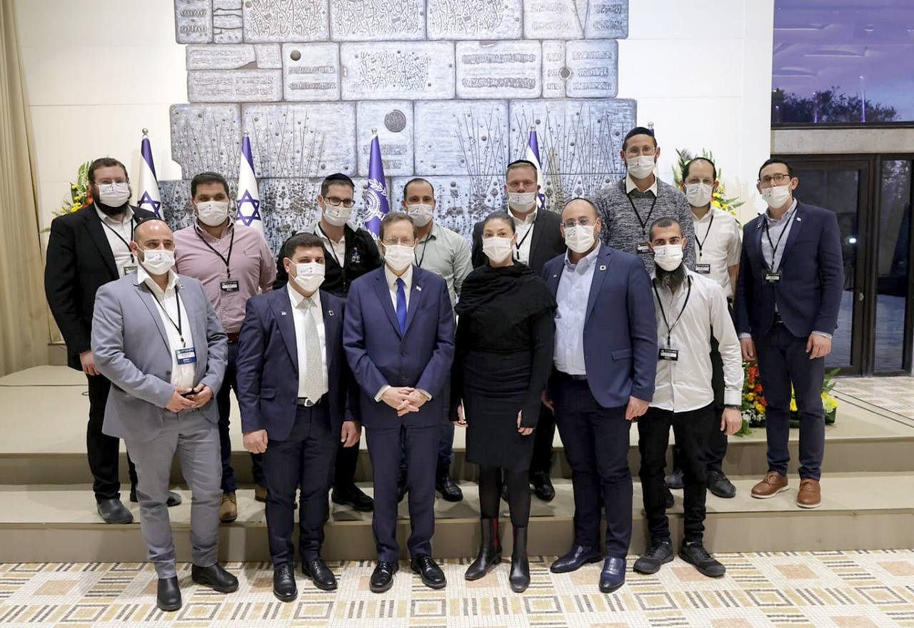 - מקבלי האותות בטקס בבית הנשיא, במעמד נשיא המדינה ושרת התחבורה