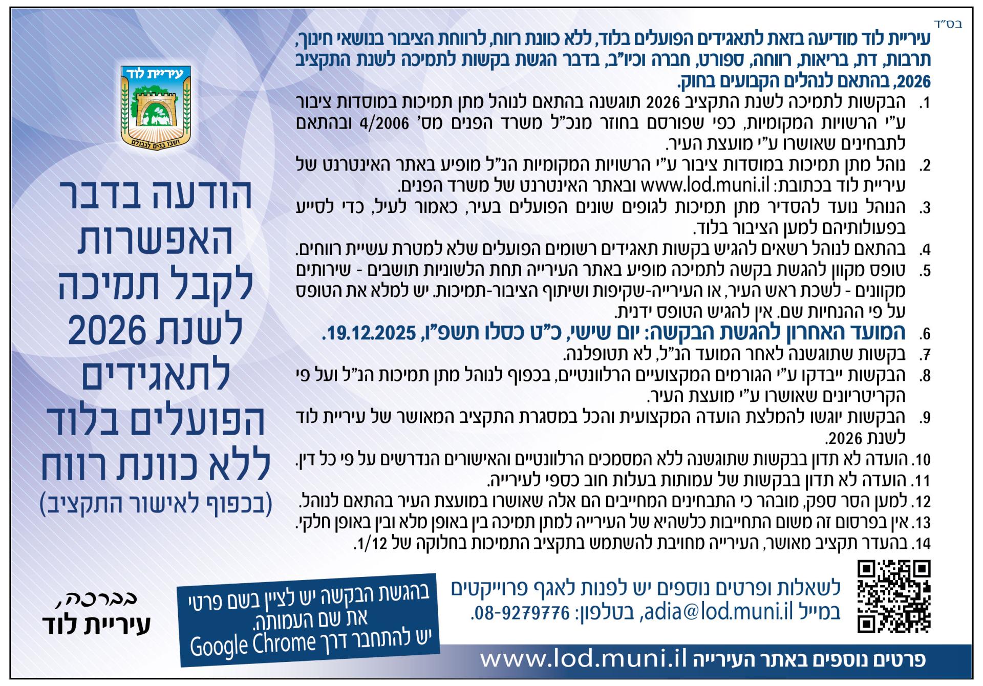 * תבחינים לתמיכות עיריית לוד בעמותות הפועלות בעיר 2026