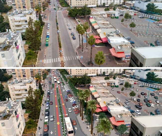 - בתמונה: הדמיית הפרויקט בשד' דוד המלך - לפני ואחרי