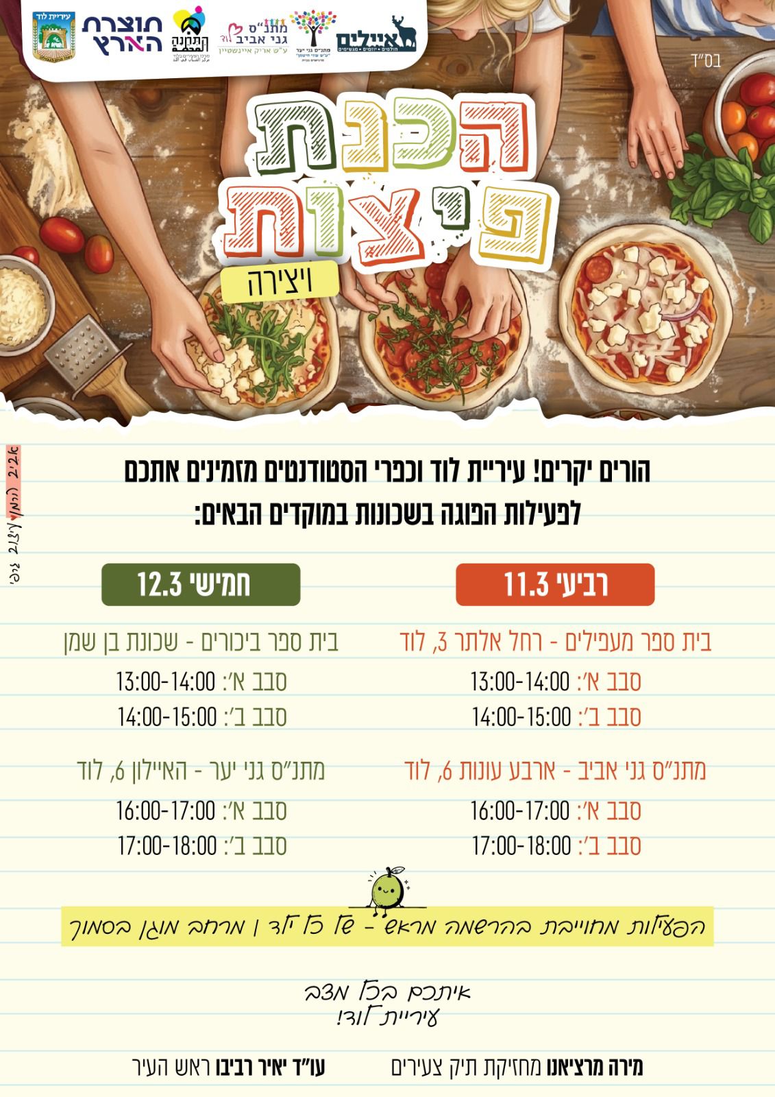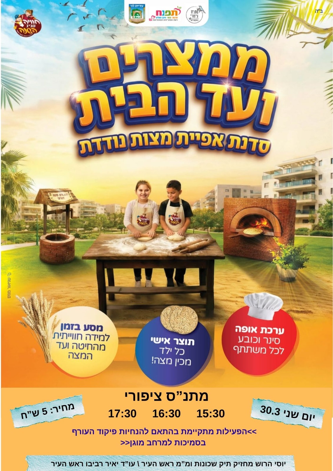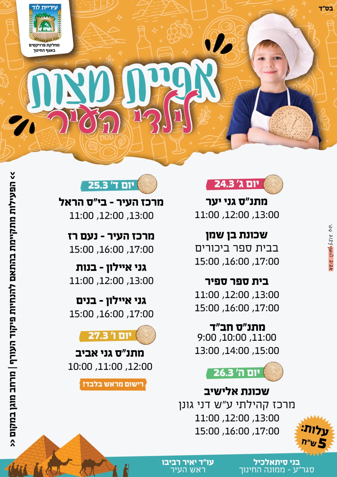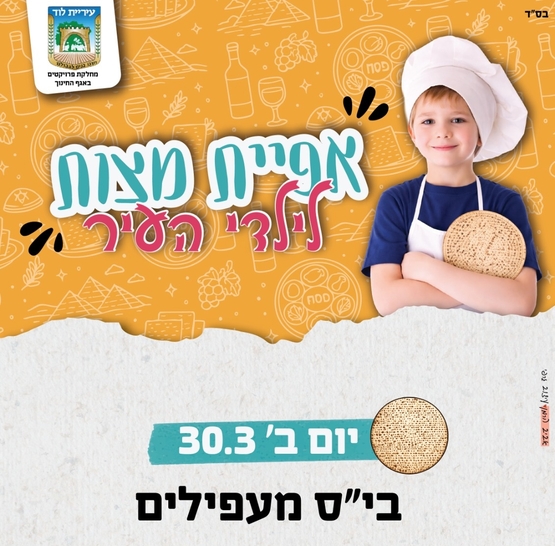 מחלקת פרויקטים באגף החינוך בעיריית לוד מזמינים אתכם לסדנת אפיית מצות לילדי העיר