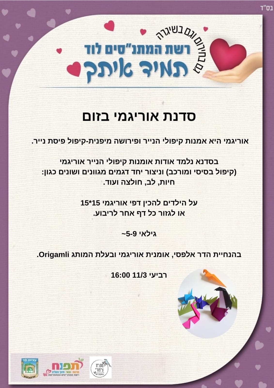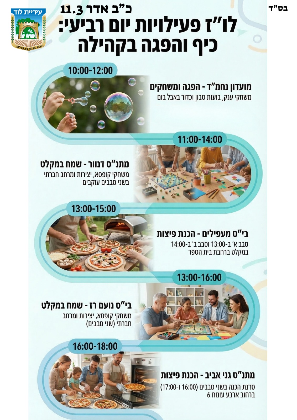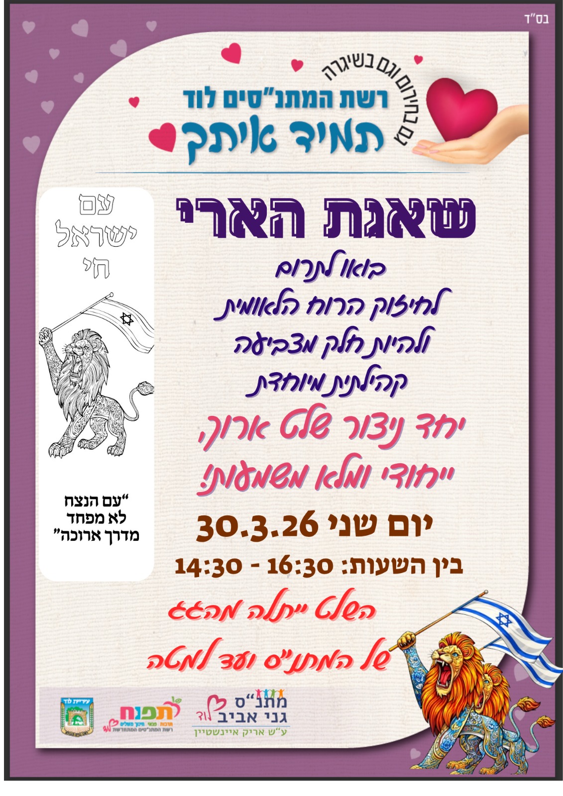 מח' תרבות יהודית בעיריית לוד מזמינה את ילדי רמת אלישיב