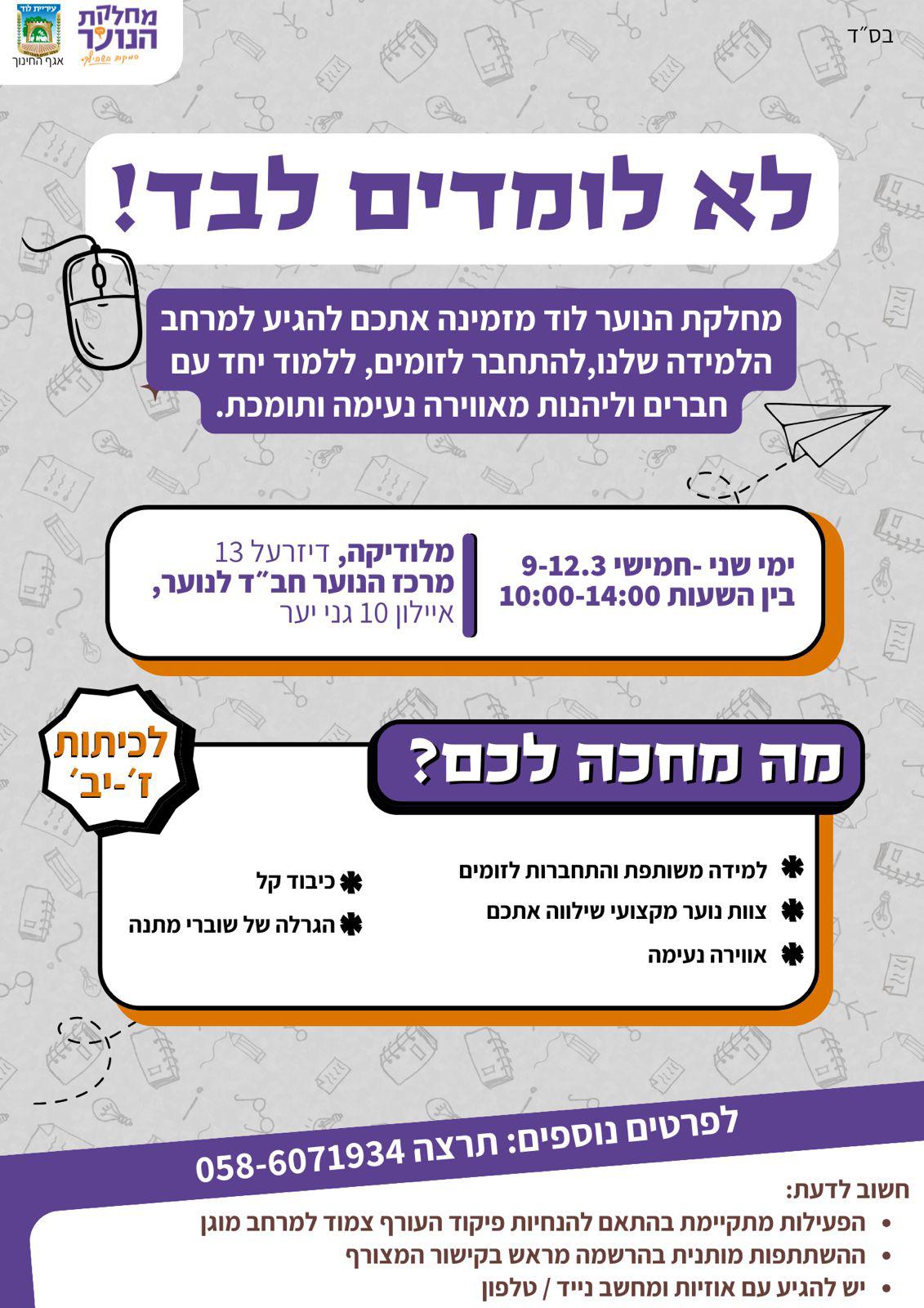 נוער לוד! נמאס לכם ללמוד לבד מהבית?