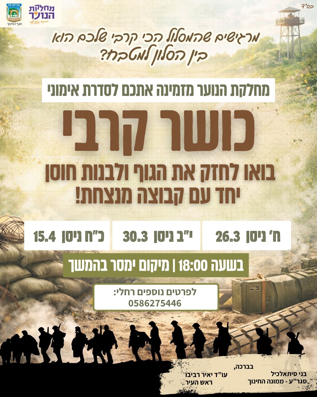 מחלקת הנוער לוד מזמינה אתכם לסדרת אימוני כושר קרבי החל מיום חמישי הקרוב!