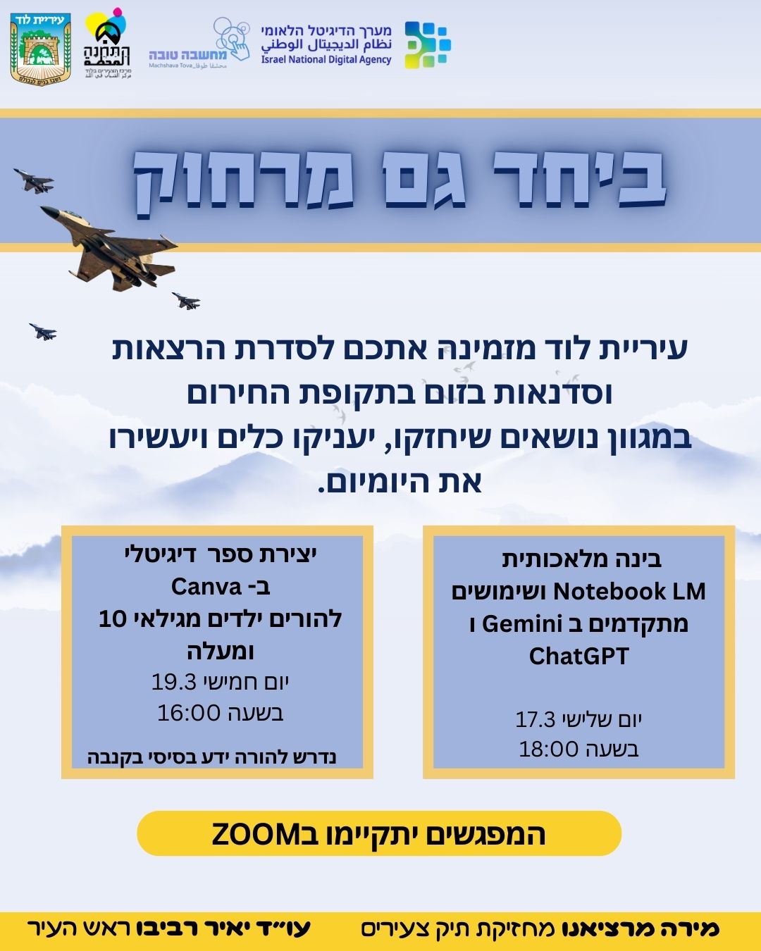 עיריית לוד מזמינה אתכם לסדרת הרצאות וסדנאות בזום בתקופת החירום – במגוון נושאים שיתנו כלים, ידע והפוגה מהמציאות.