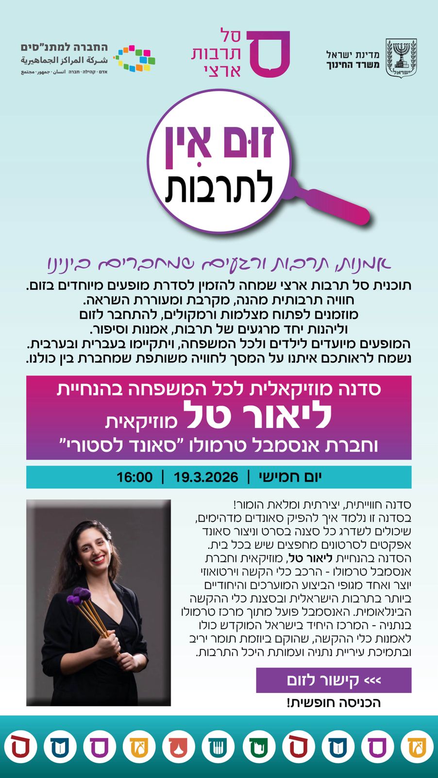 מחר (חמישי) ב-16:00, אנחנו מארחים את המוזיקאית ליאור טל (אנסמבל טרמולו) לסדנה הכי קצבית ומצחיקה שיש: "סאונד לסטורי"!