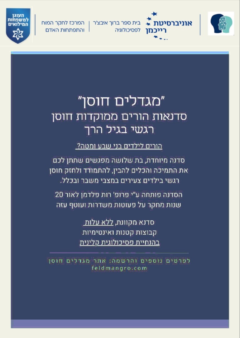 - מענה לקשיים של הקטנטנים (0-3) לפני, במהלך ואחרי שירות המילואים.