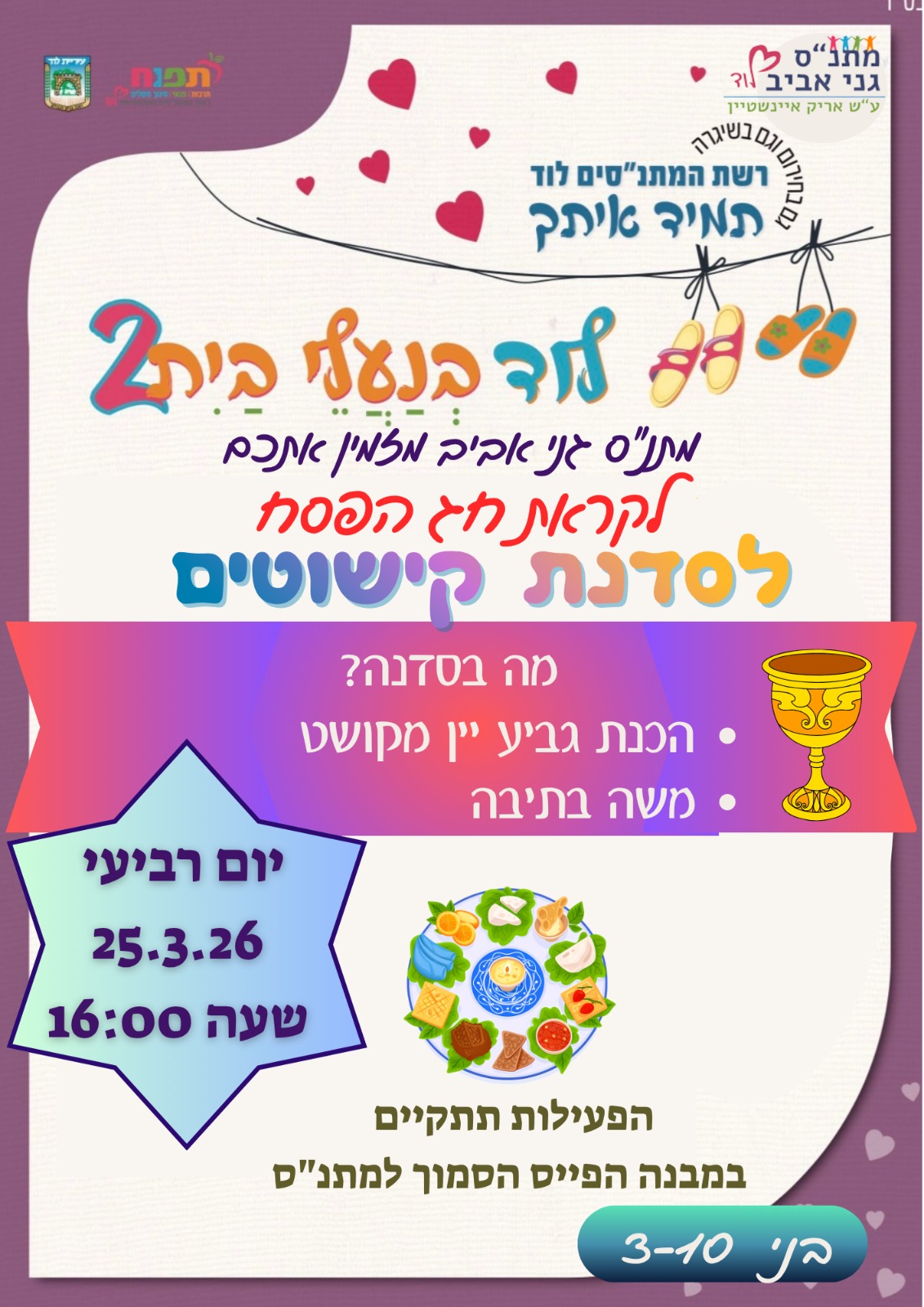 רשת המתנ"סים לוד יחד עם מתנ"ס גני אביב מזמינים אתכם ואת ילדיכם לקראת חג הפסח לסדנת קישוטים מהנה במיוחד!
