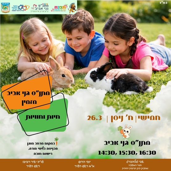 הורים וילדים יקרים, מתנ"ס גני אביב מזמין אתכם לפעילות "חיות וחוויות"
