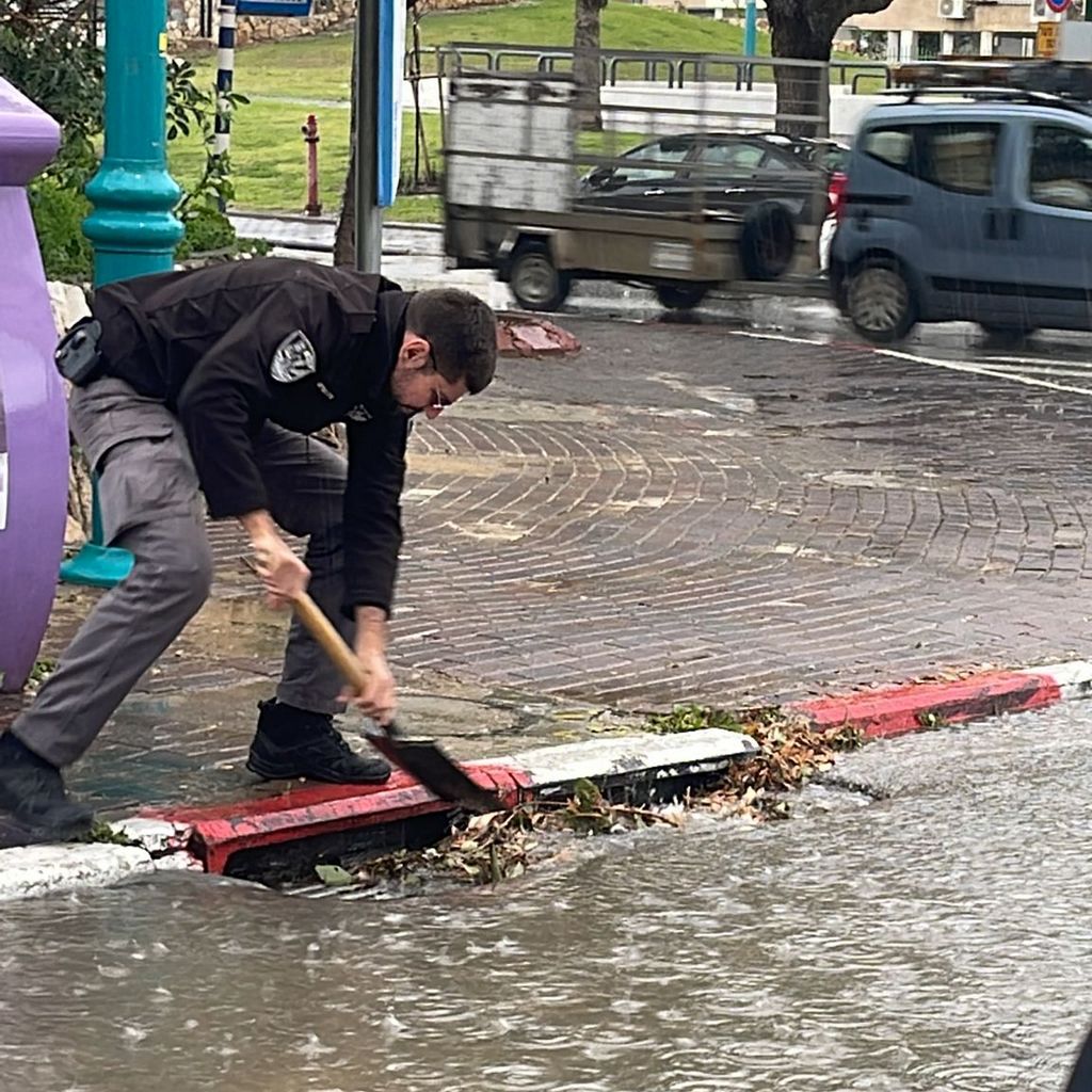 - אנשי הפיקוח והשיטור העירוני נרתמו למשימה בניקוי פתחי הניקוז