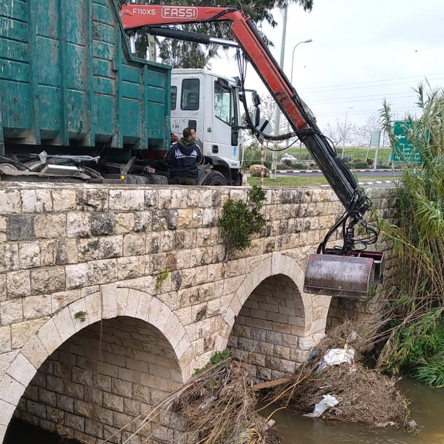 - ניקוי לכלוך וסחף בפתחי גשר גינדאס כדי לאפשר את זרימת הנחל