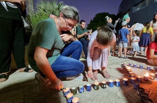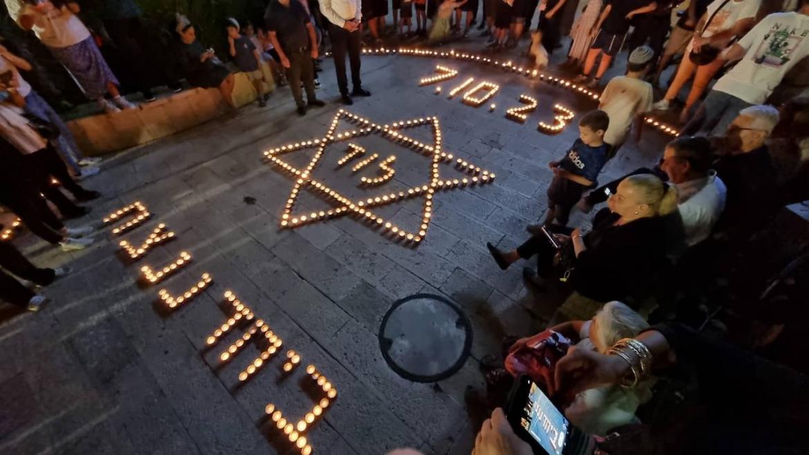 עם מגן דוד ותאריך הטרור: בלוד הודלקו נרות נשמה לזכרם של מעל 1,400 נרצחי הטבח בשמחת תורה