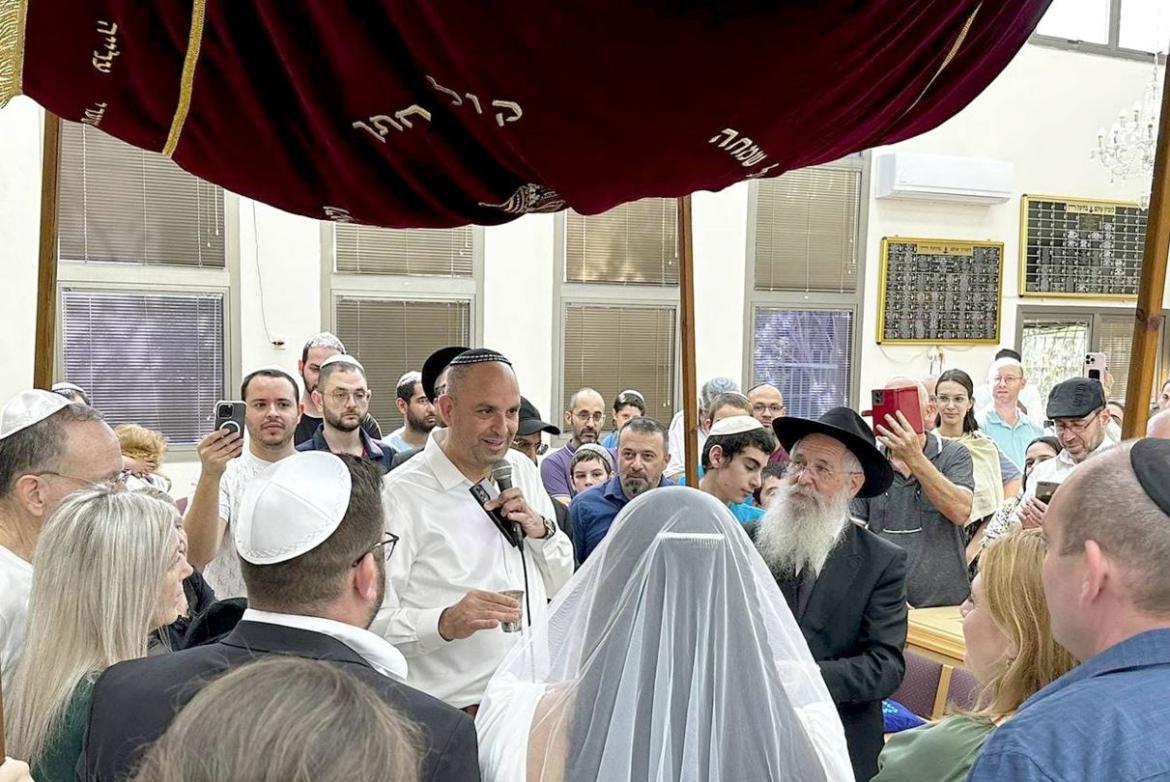 בעיצומה של המלחמה: החתן יצא לאפטר מהמילואים והחופה נערכה בבית הכנסת בגני אביב בלוד