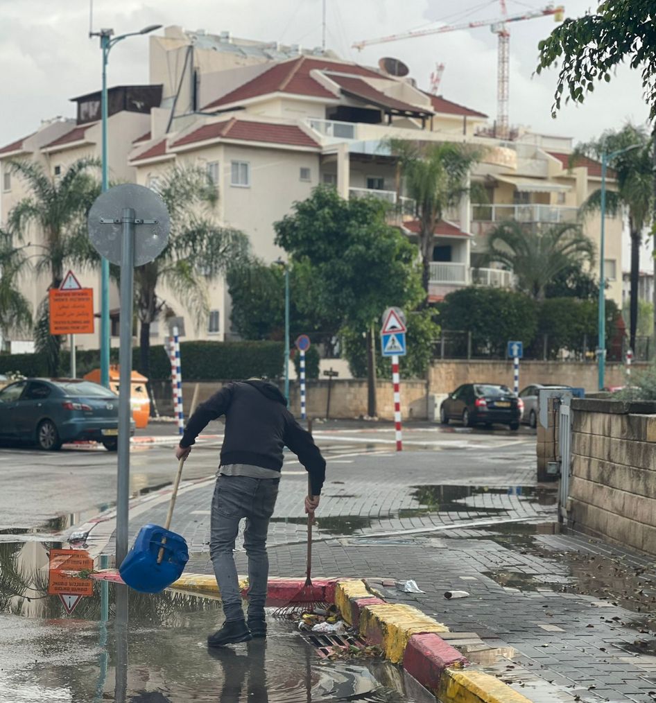 עובדי אגף התפעול בעיריית לוד פעלו בקדחתנות כדי להתגבר על ההצפות בעיר