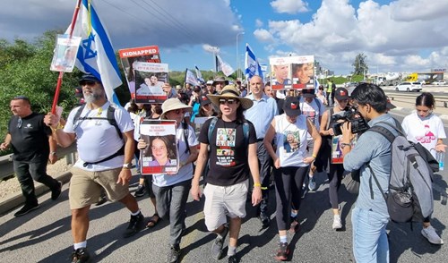 עובדי עיריית לוד ותושבי העיר צעדו עם משפחות החטופים בדרכם לירושלים