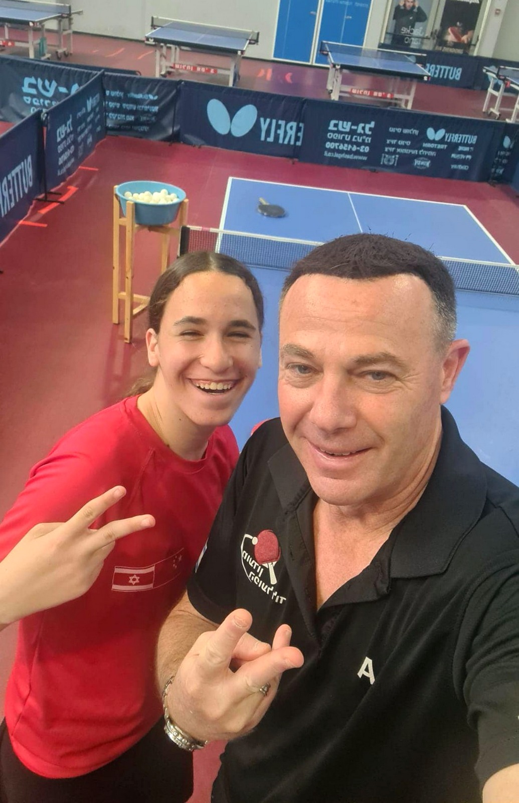 המאמן הראשי של הפועל לוד איציק אברמוביץ עם האלופה מלכות שרמן.jpe