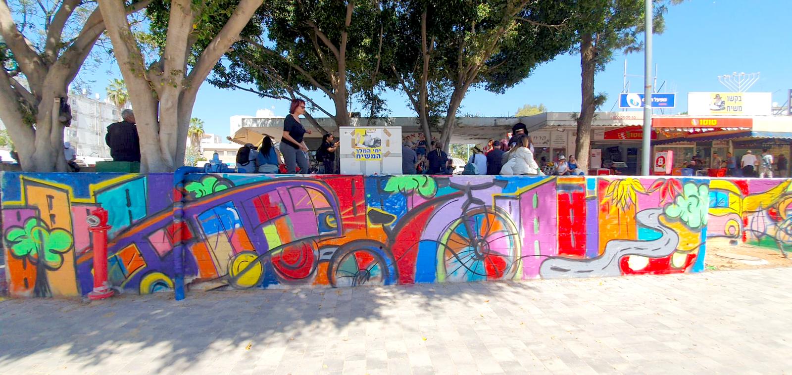 הקירות שקיבלו מראה צבעוני בסביבת כיכר קומנדו בלוד.jpe