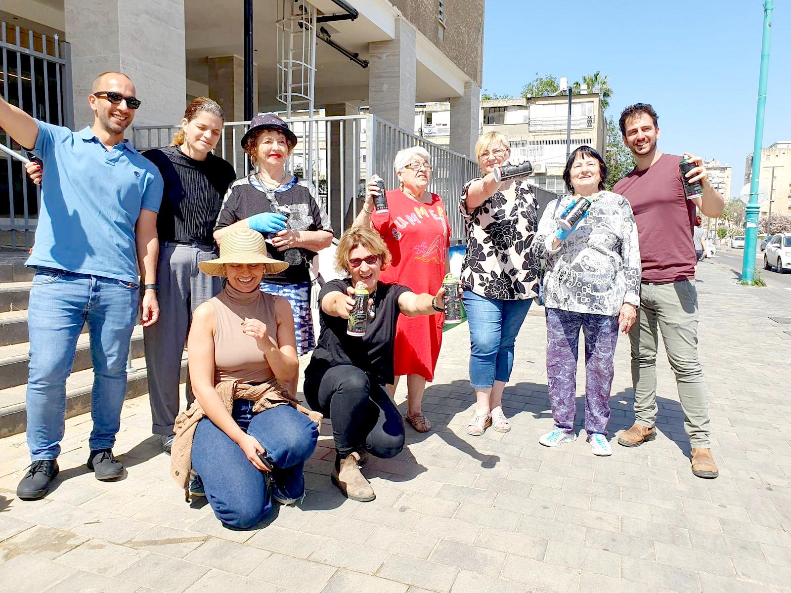 ספריי וחיוך התושבות שצבעו את הקירות יחד עם התלמידים מבתי הספר בלוד.jpe