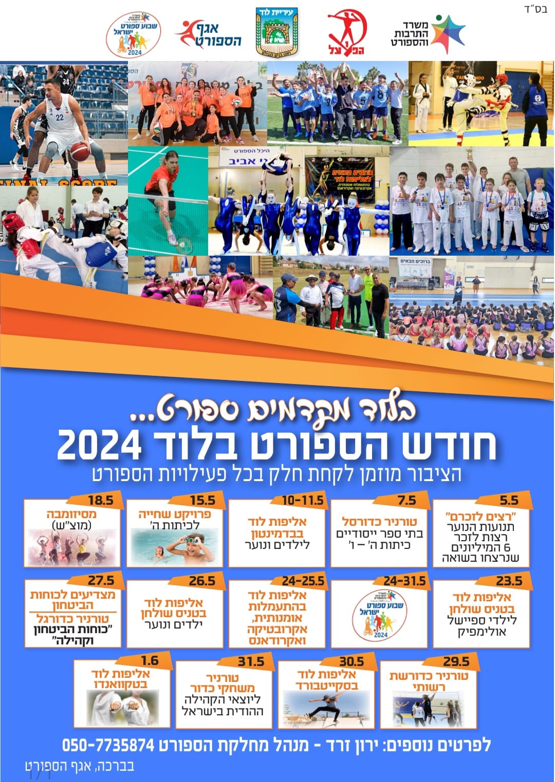 זה כבר הפך למסורת: כידוע, מזה 3 שנים, שבלוד מקיימים בחודש מאי, את "חודש הספורט". על היוזמה הברוכה חתום מנהל מחלקת הספורט, ירון זרד, שמאז שנכנס לתפקידו, הפך את חודש מאי לחודש בו מקיימים בלוד שלל פעילויות, אליפויות ותחרויות ספורט. גם השנה, למרות שאנו מצויים בעיצומה של מלחמת "חרבות ברזל", מתקיימות החודש שלל רב של תחרויות ספורט במגוון ענפים, בכל התחומים והגילאים.