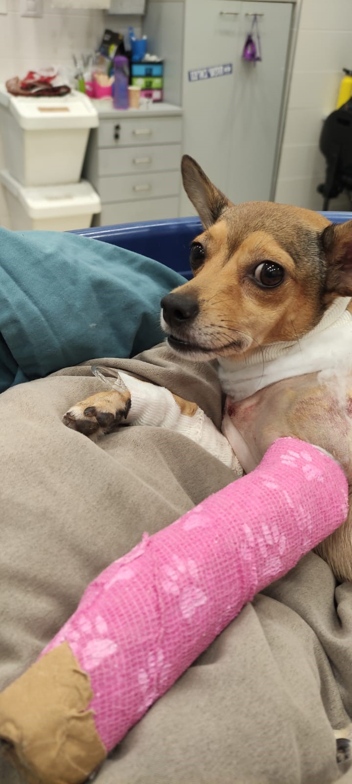 עם הגעתה של הכלבה למחלקה הווטרינרית בלוד, היא הובהלה לאחר בדיקה ראשונית לבית החולים בבית דגן, שם קיבלה מענה טיפולי הולם ובימים הקרובים אמורה להשתחרר.
