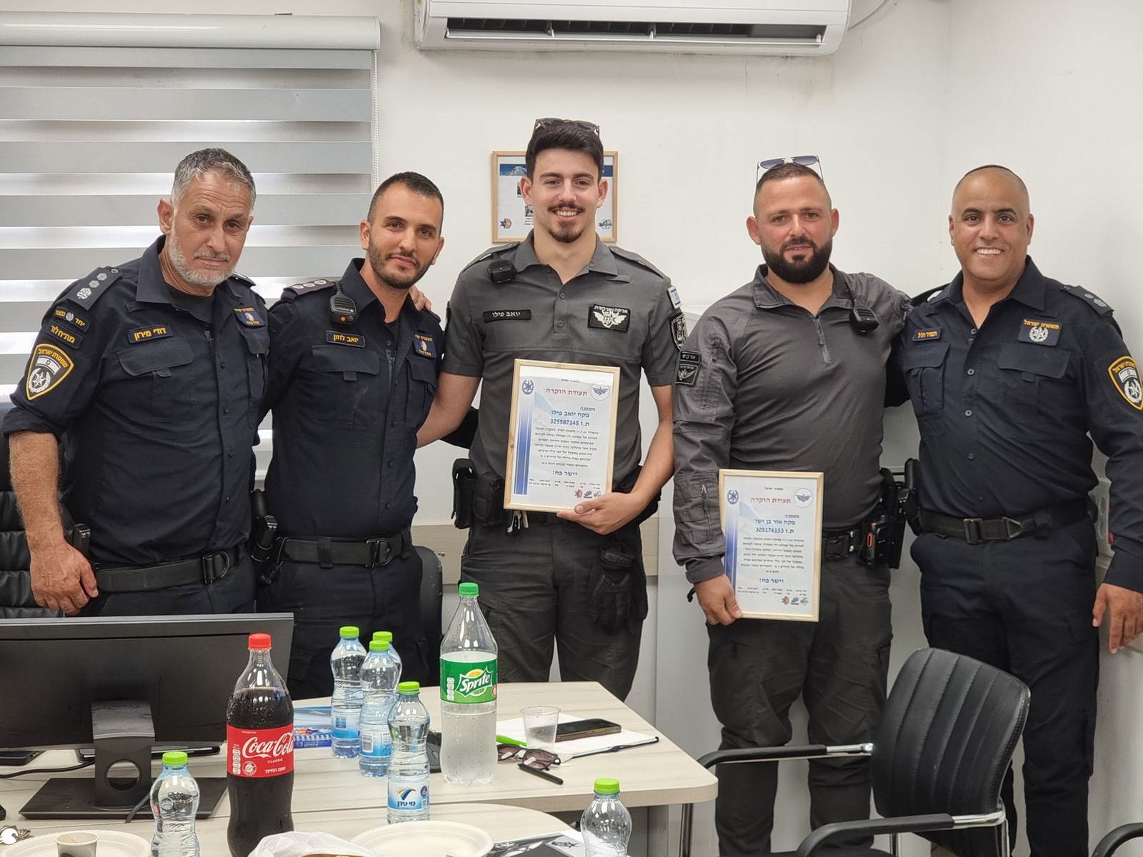משטרת לוד העניקה השבוע תעודות הוקרה לפקחי השיטור העירוני בלוד - אור בן ישי ויואב פילו, על אומץ וחתירה למגע, וסיוע במאבק התמידי של המשטרה אל מול הפשיעה הפלילית.