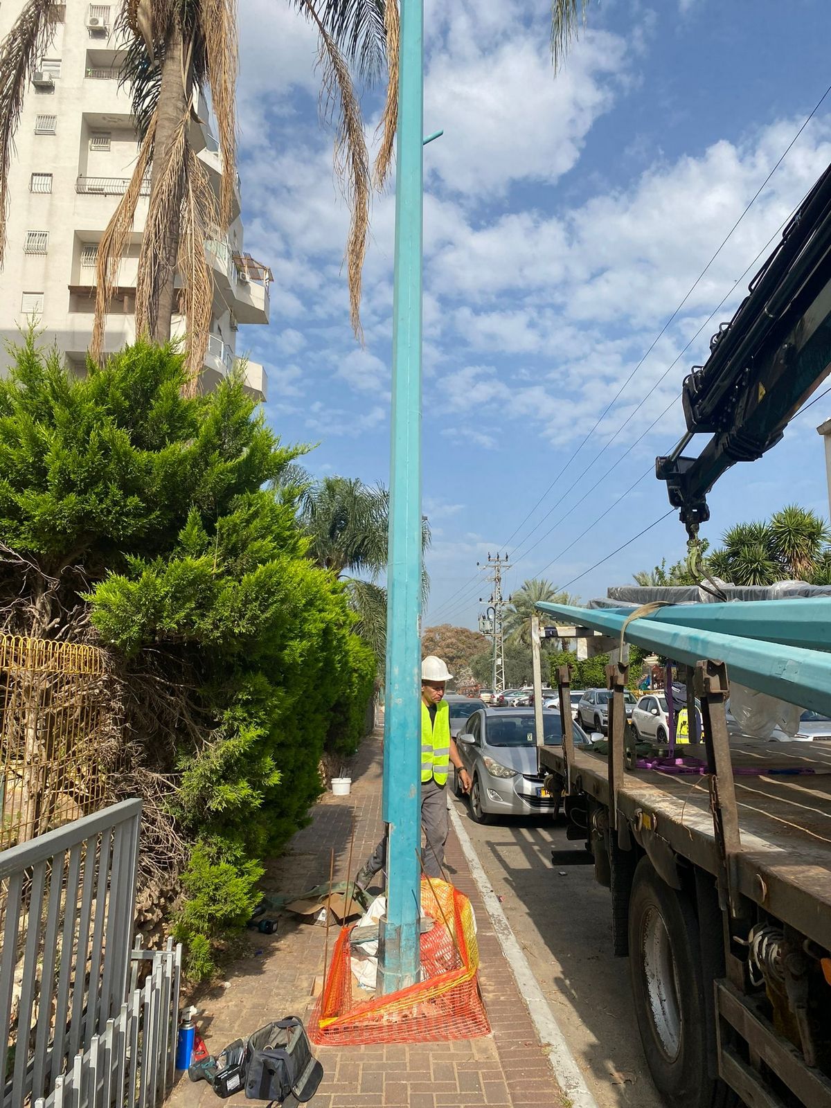 מתקינים עמודי חשמל חדשים בשכונת גני יער בלוד.jpe