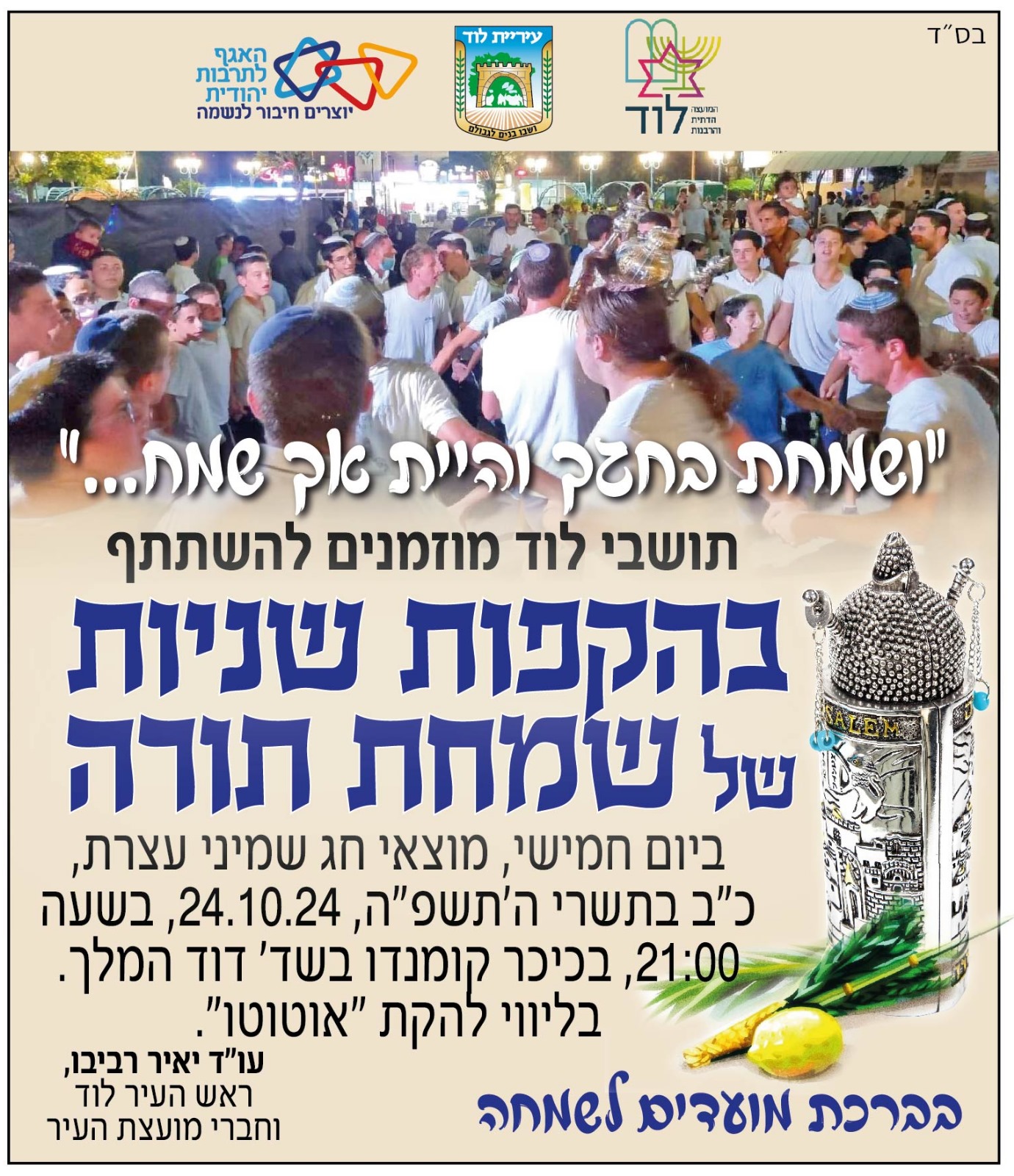 יום חמישי | כ"ב בתשרי | 24.10 | החל מהשעה 21:00 בערב