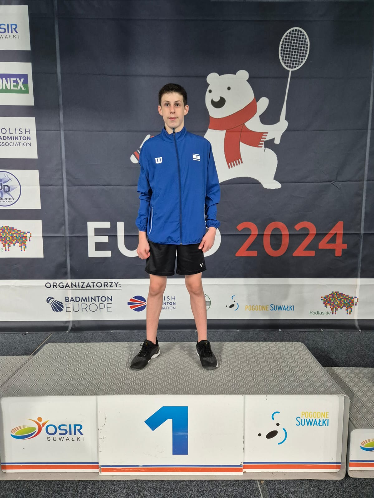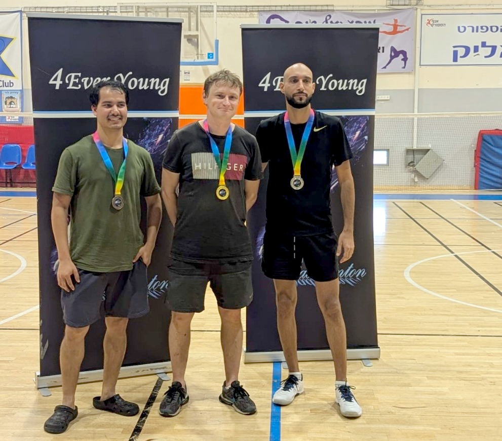 דותן שרגא על הפודיום לאחר הזכייה במקום הראשון בליגת בדמינטון ישראל