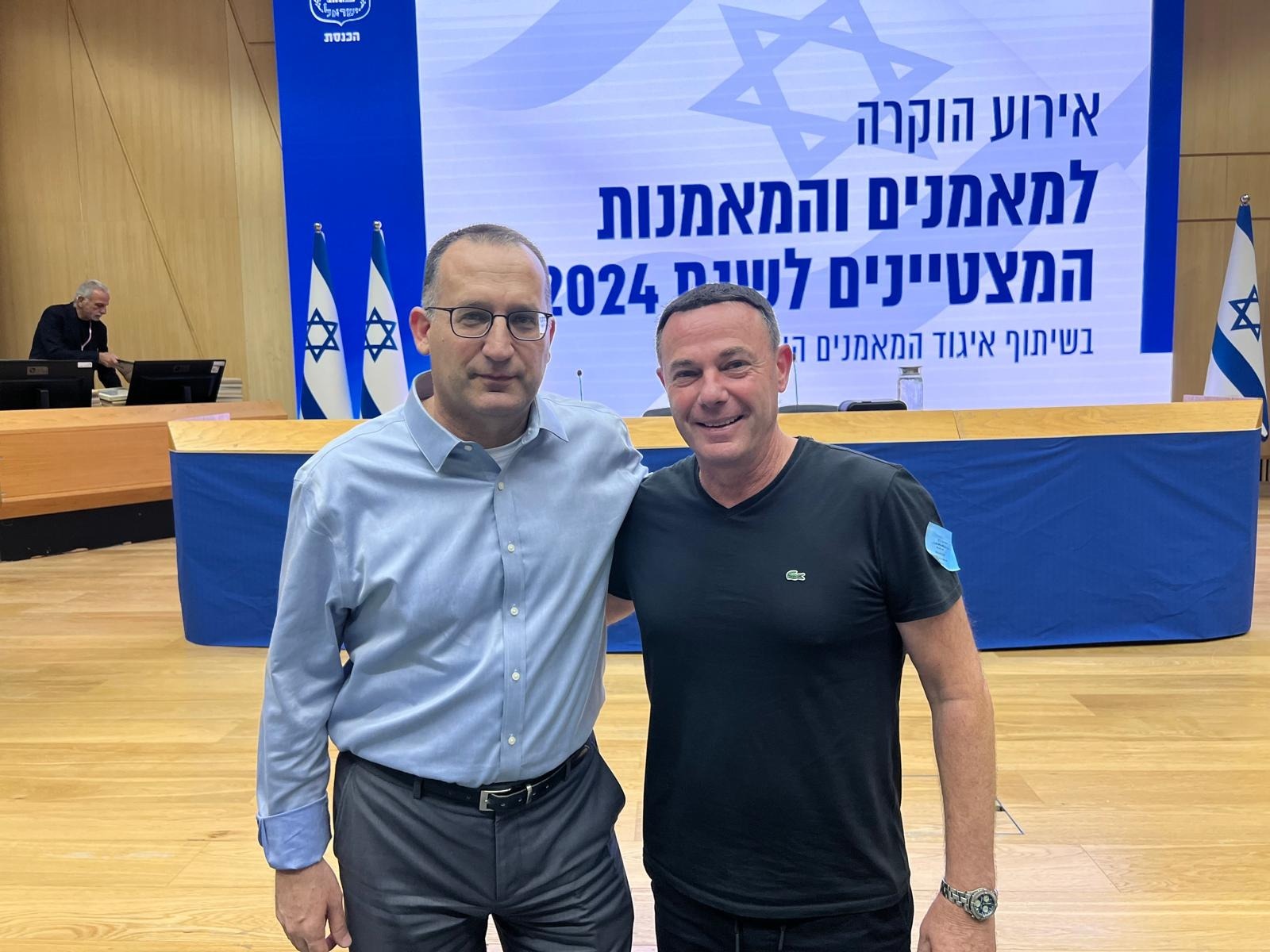 איציק אברמוביץ בטקס הענקת תואר מאמן השנה בכנסת עם רן קוניק, יור הוועדה שבחרה בו