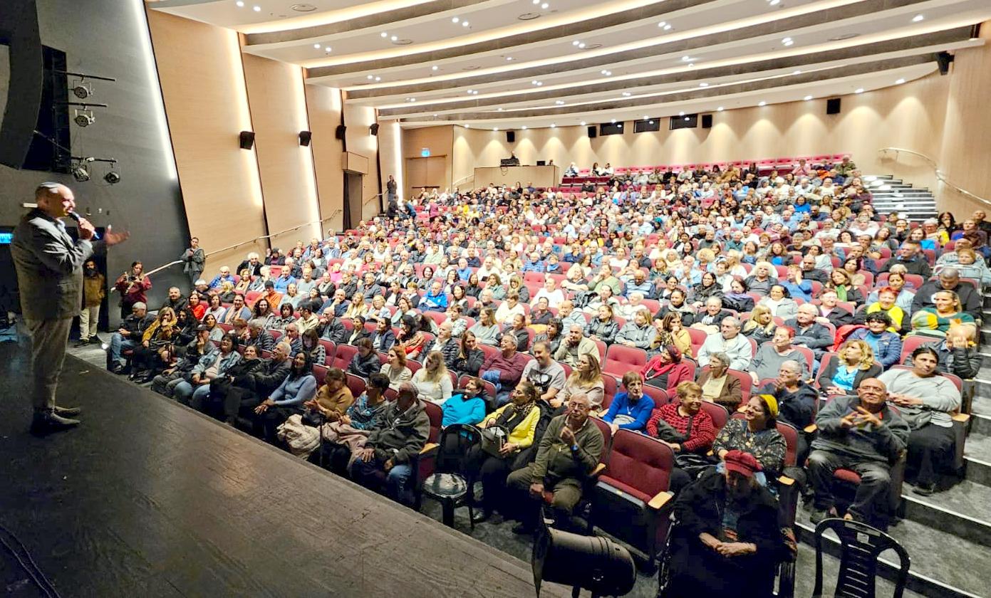 משקיע בתרבות ופנאי לתושבי לוד. ראש העיר מברך בפני ההיכל המלא טרם תחילת ההצגה הראשונה