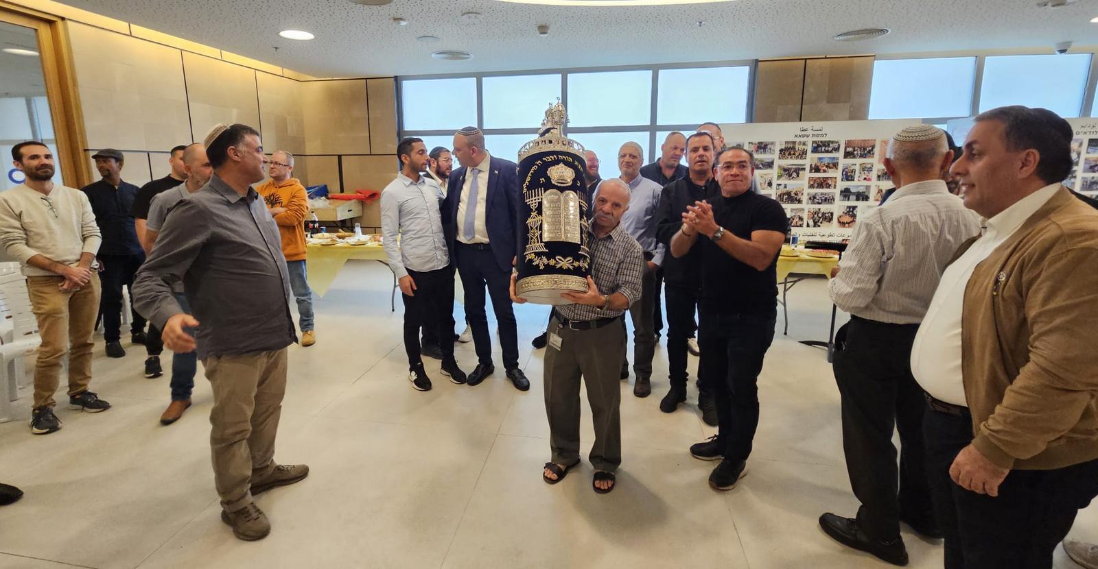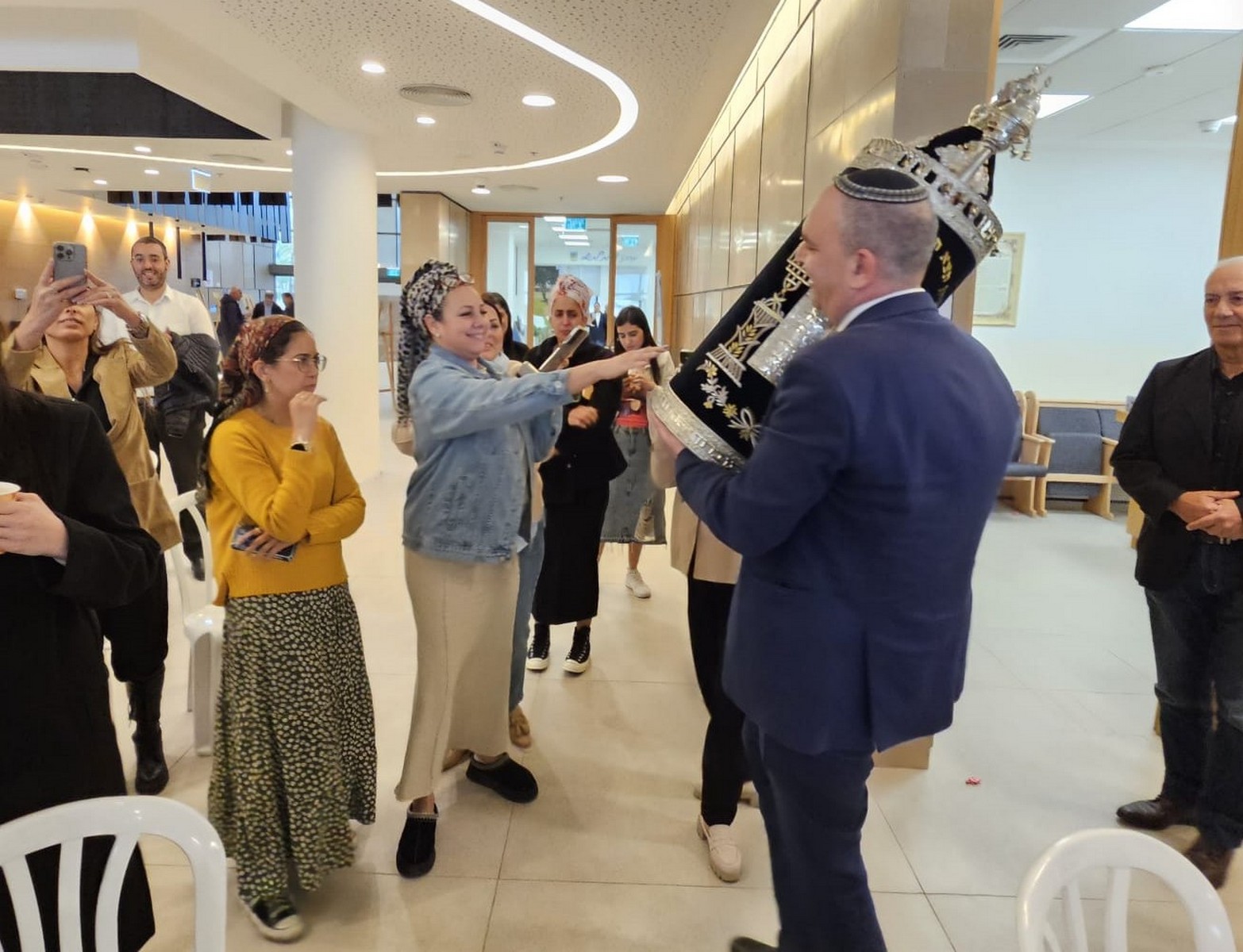 עיריית לוד חנכה בית כנסת במשכנה, בריקודים עם ספר התורה, דברי ברכה וסעודת מצווה