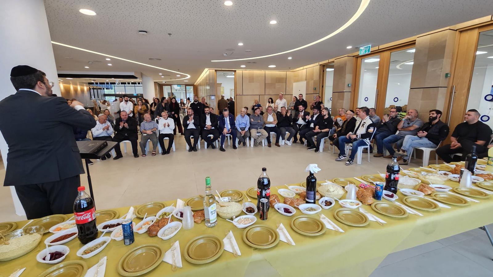 בתום הטקס התיישב קהל האורחים לסעודת מצווה בשרית ומכובדת שנתרמה ע"י יו"ר וועד העובדים דני כהן ורעייתו אתי. את המעמד המרגש חתמה תפילה מנחה ברוב עם שהתקיימה בבית הכנסת.
