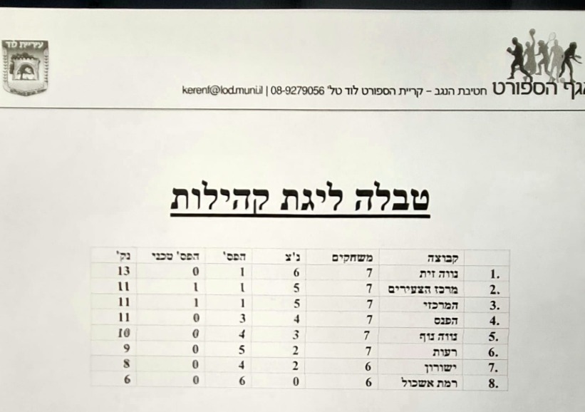 - תכנית מועדון ספורט בית ספרי ממשיכה בהצלחה גם בשנתה השלישית. תושבי שכ' רמת אשכול, בהובלת מתנ"ס שיקאגו, מציגים: רוכבים אל העתיד - חוג האופניים שמאחד ומחבר את ילדי רמת אשכול. נבחרת הבדמינטון של מכבי לוד כיכבה באליפות הפתוחה של קריית טבעון עם 3 מדליות זהב ומדליית ארד. טניס שולחן: הפועל לוד עלתה לשלב הבא בגביע המדינה לגברים ולנשים! כדורסל: המחזור השביעי של ליגת הקהילות בלוד סיפק דרמות בלתי נשכחות. קבוצת הפועל עירוני לוד נשים הביסה את באר שבע וממשיכה להילחם בצמרת! כדורגל: הפועל בני רגב לוד עצרה את הסחף השלילי עם תיקו נגד שמשון ת"א.