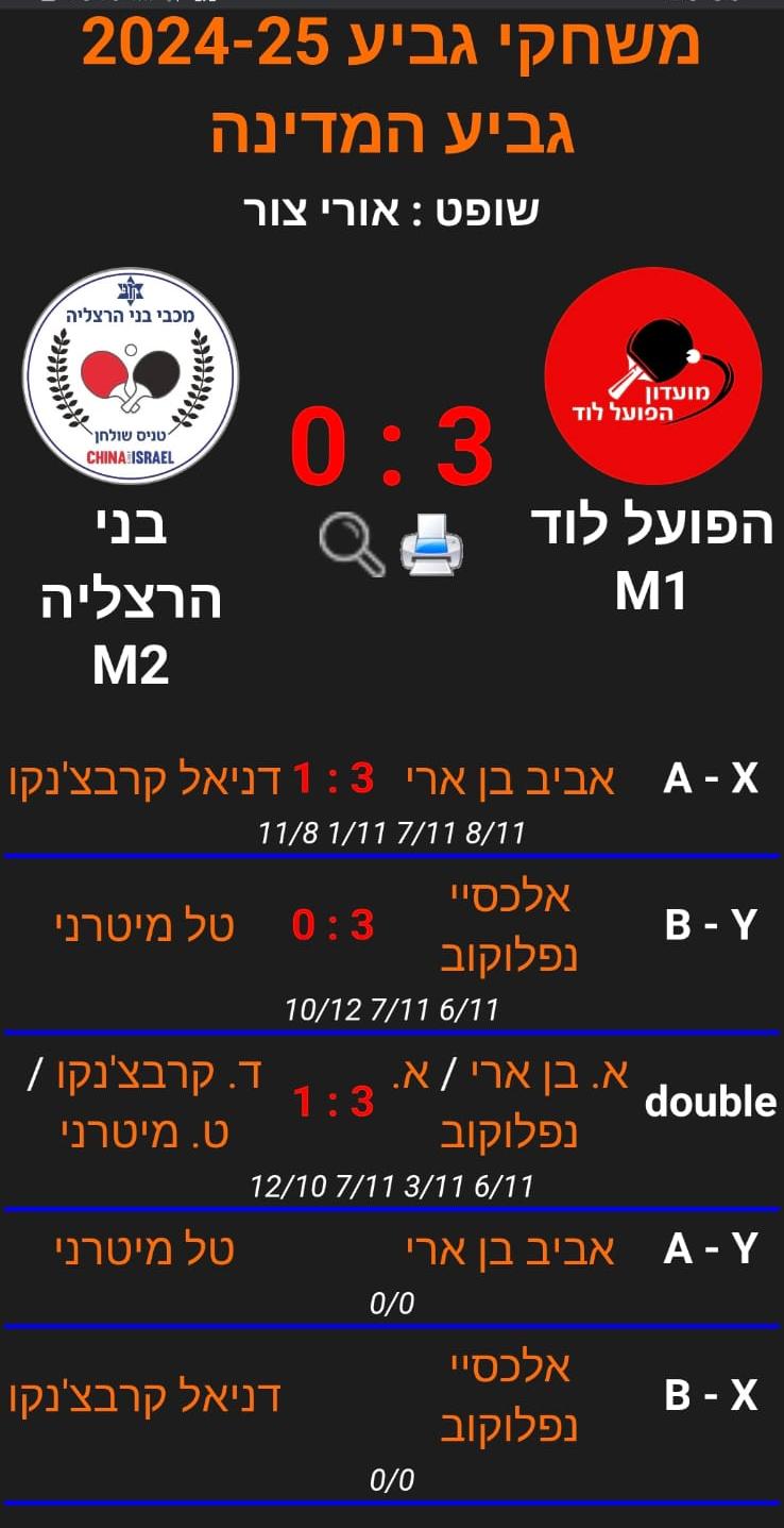 קבוצת הפועל לוד בטניס שולחן ממשיכה להראות דומיננטיות ויכולת יוצאת דופן, עם הישגים מרשימים שמביאים כבוד לעיר לוד ולמועדון. המאמן הראשי, איציק אברמוביץ', המוביל את המועדון ביד רמה ותחת הנהגתו הפכה הפועל לוד לאחד מהמועדונים המצליחים בארץ.