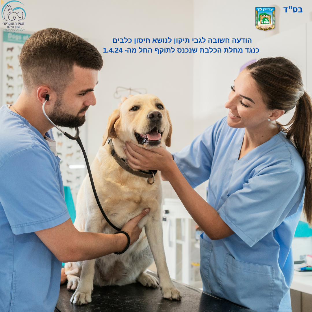 הודעה חשובה לגבי תיקון לנושא חיסון כלבים כנגד מחלת הכלבת שנכנס לתוקף החל מה- 1.4.24